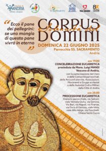 ore 19:00 concelebrazione Eucaristica presieduta dal Vescovo Mons. Luigi Mansi, a seguire la processione Eucaristica.