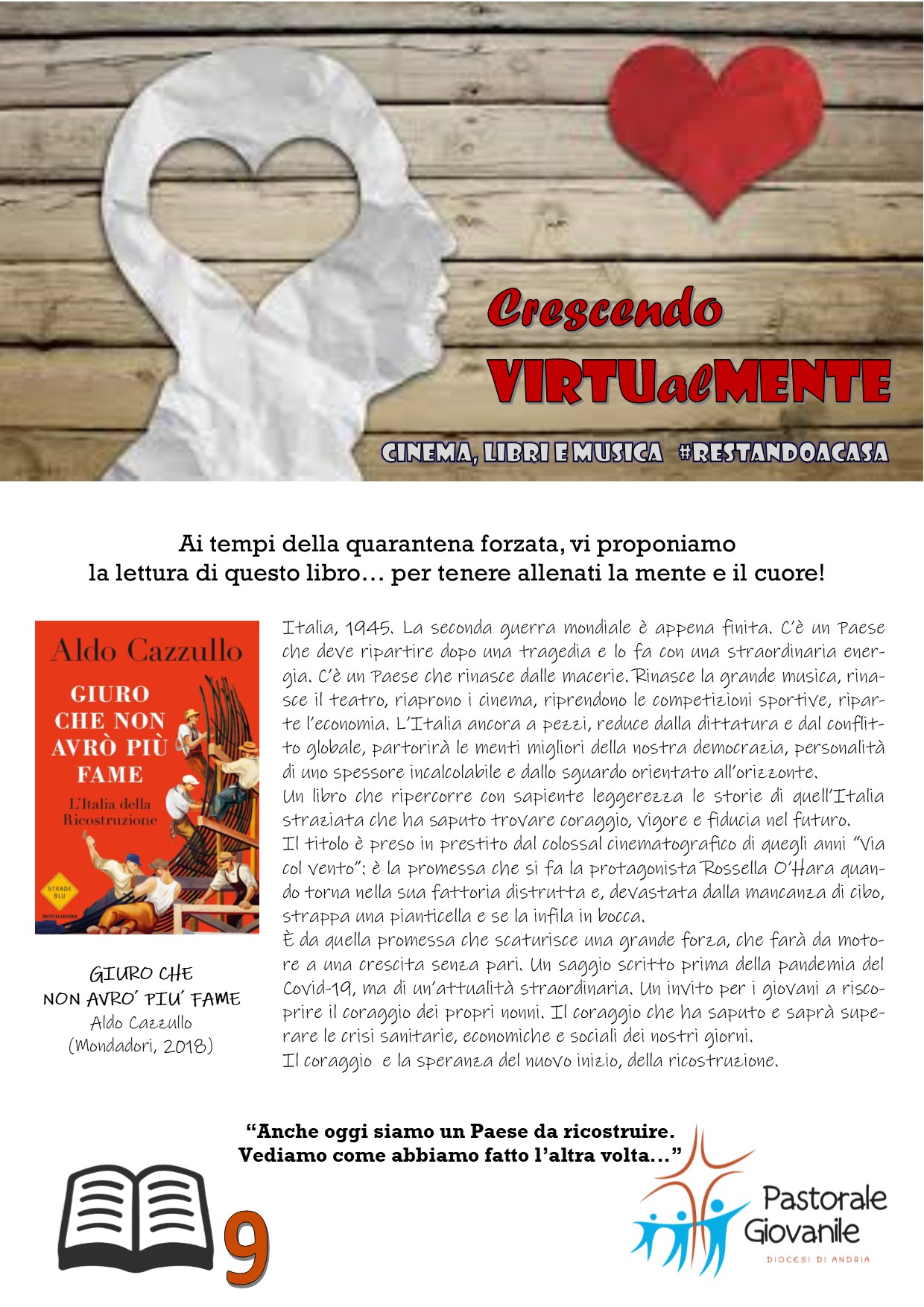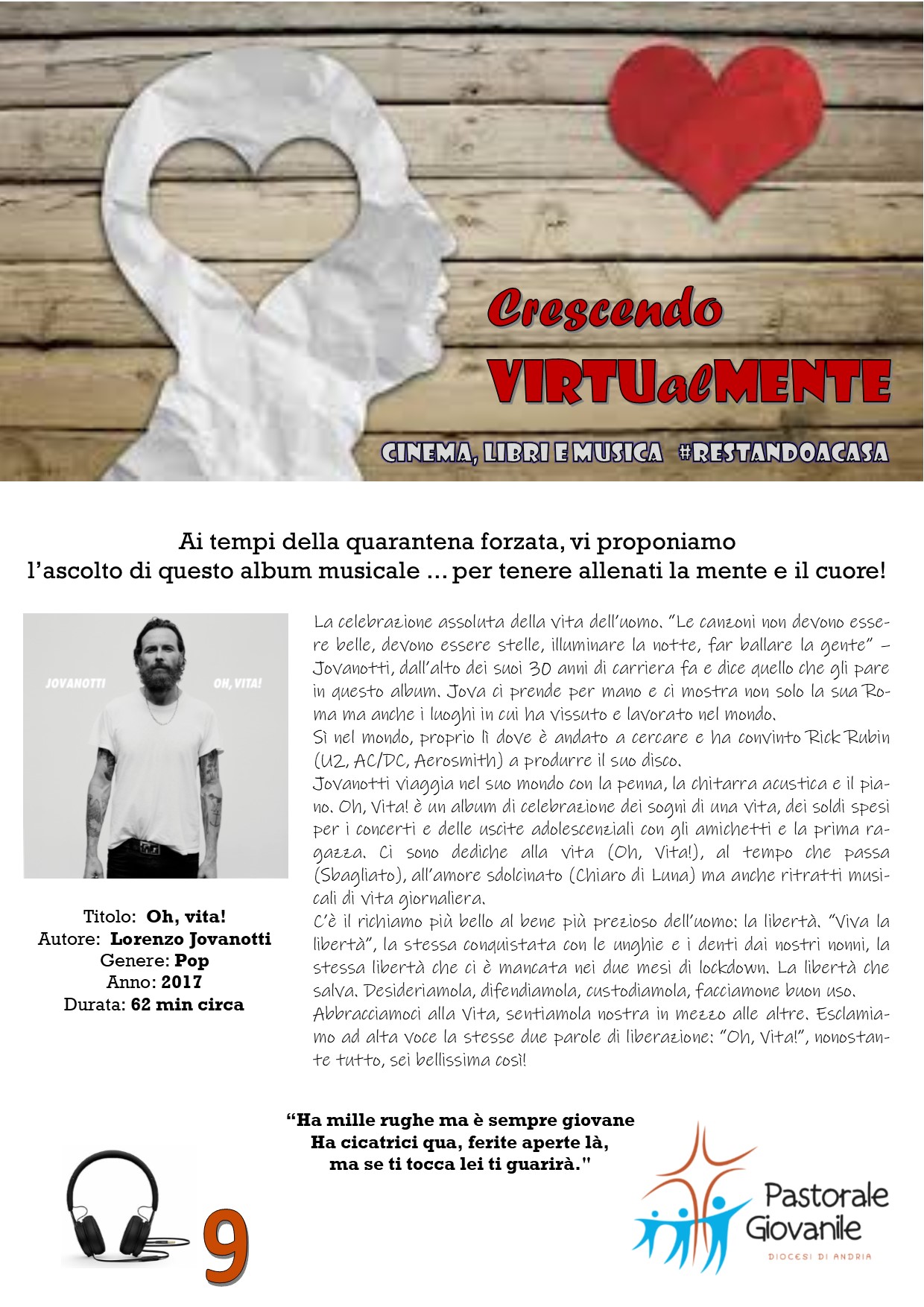 dalla Diocesi, news 19 Maggio 2020 nicolamanco CRESCENDO VIRTUalMENTE ULTIMA SETTIMANA L’ Ufficio di Pastorale Giovanile della Diocesi, promuove una rubrica culturale che possa essere utile in questo particolare tempo che viviamo. #restandoacasa con film, musica e libri. FacebookPinterestTwitterLinkedin
