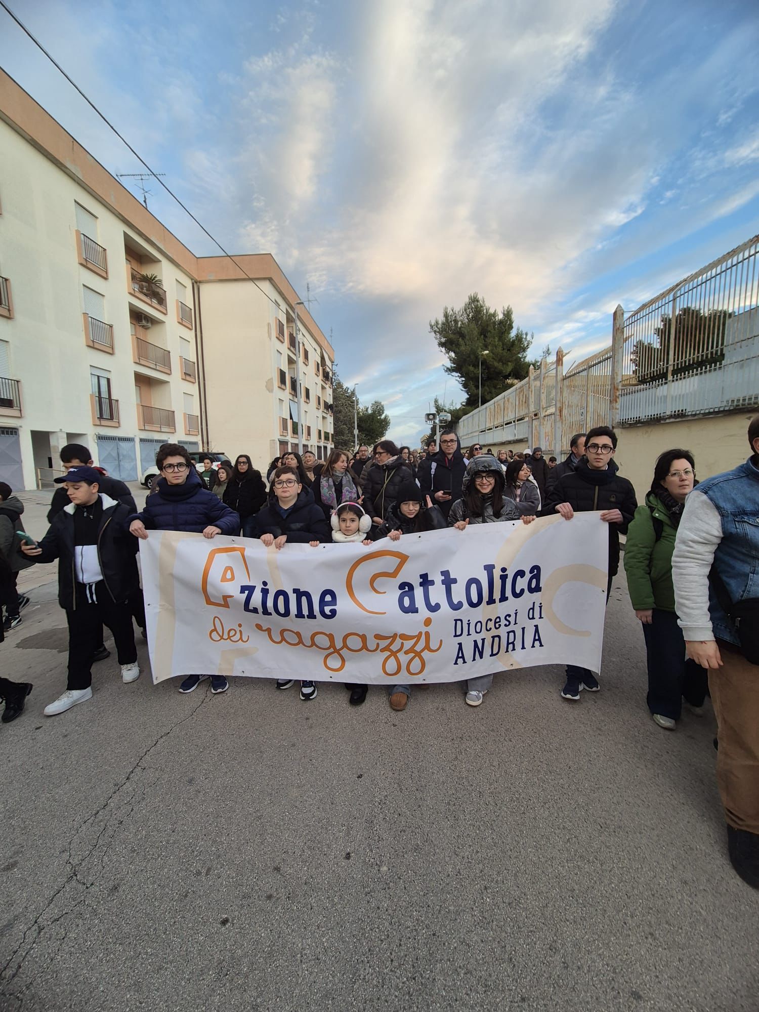 Si è tenuta ad Andria nel pomeriggio del 24 gennaio la Marcia Diocesana della Pace grazie alla collaborazione dell’Acr diocesana e dell’Ufficio di Pastorale Sociale e del Lavoro, Giustizia, Pace e Custodia del Creato.