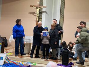 Dopo il momento di preghiera presieduto dal Mons. Luigi Mansi e le testimonianze, si è tenuto il momento più atteso dai bambini: quello della premiazione del Concorso “Michele Guglielmi – Uomo di Pace”. I bambini si sono cimentati in componimenti poetici che con la loro genuinità ci fanno ancora sperare che la Pace sia un sogno possibile.