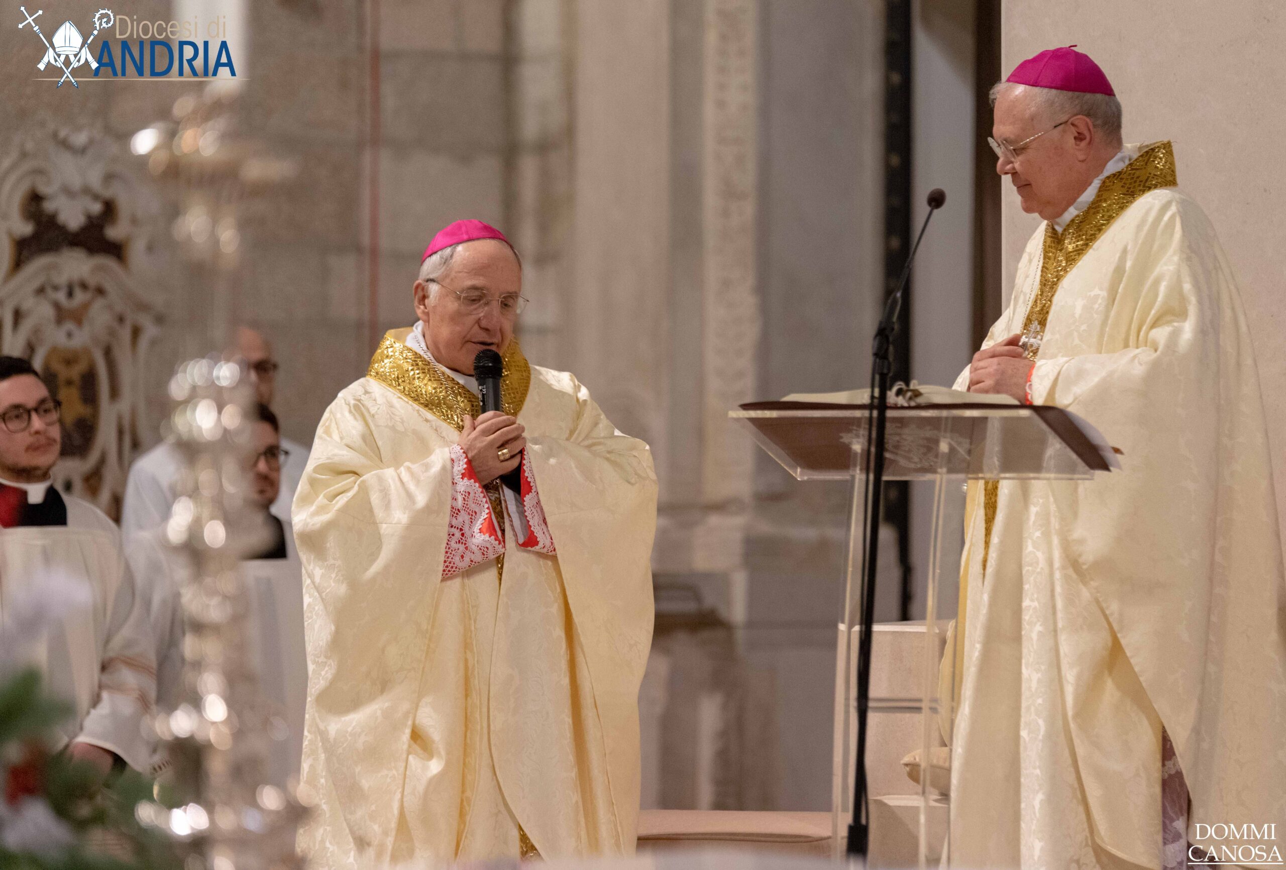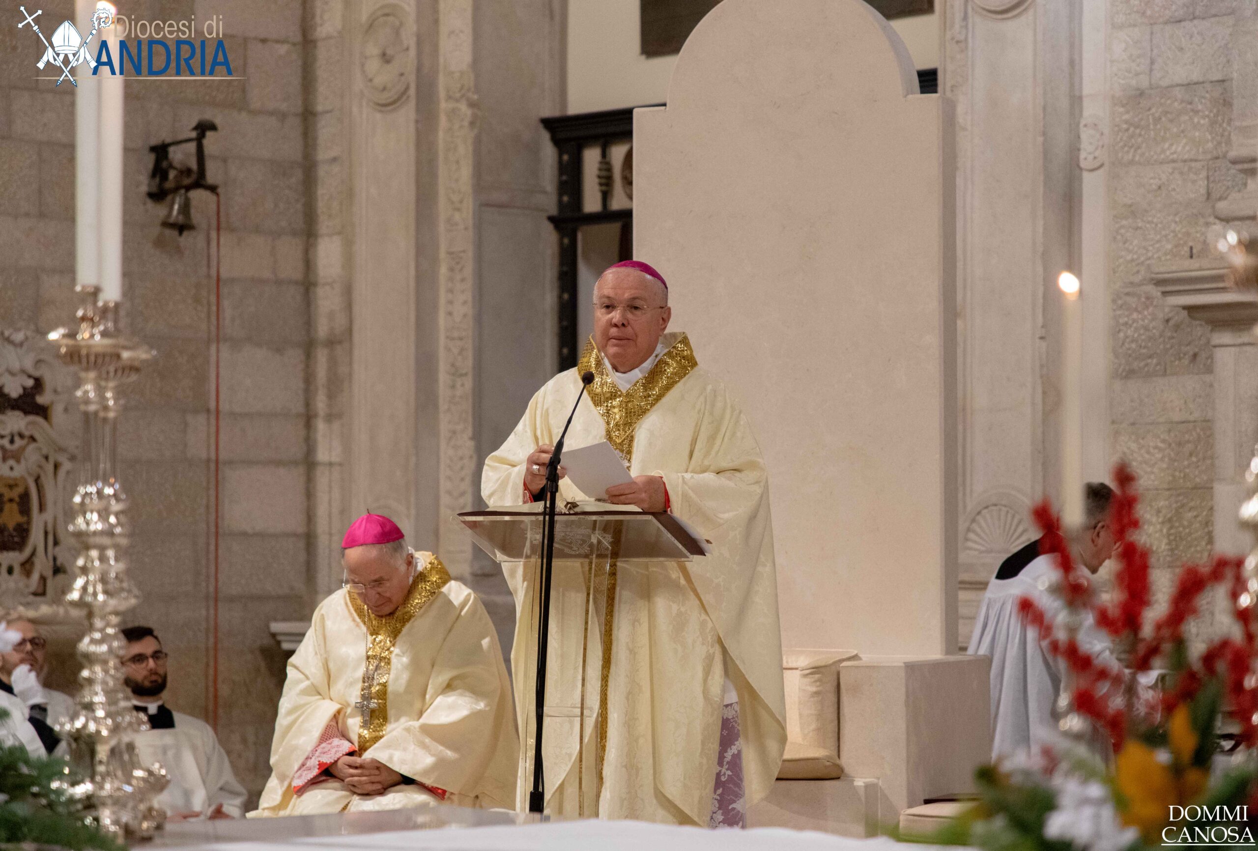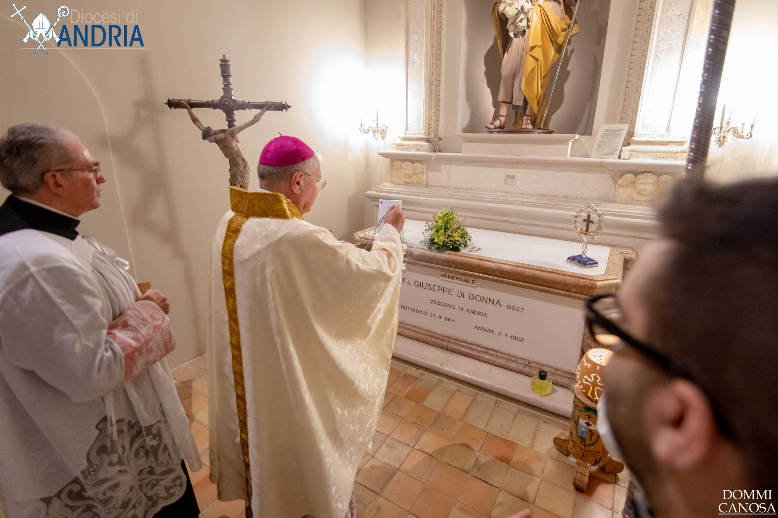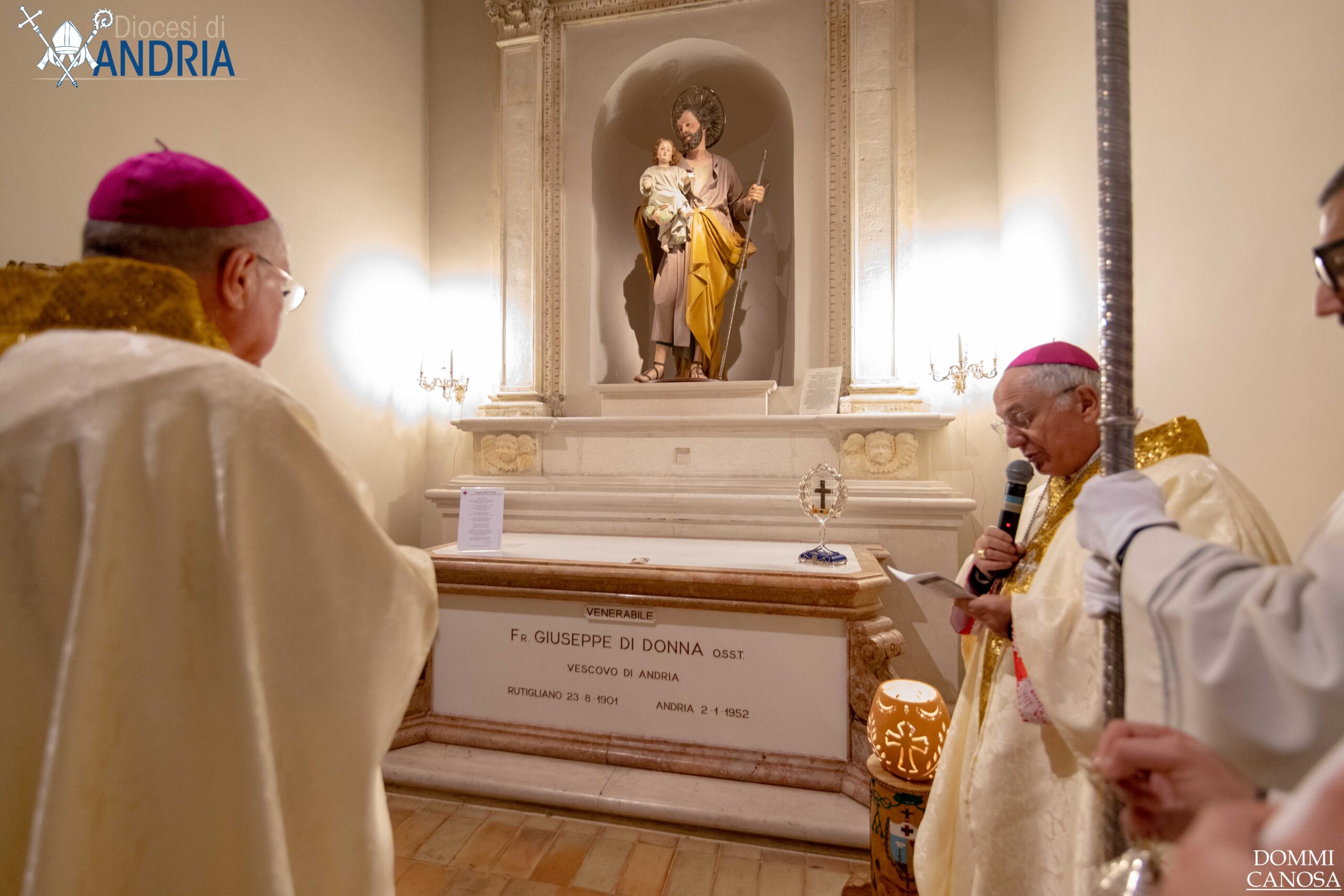 C’è un filo d’oro che lega la Chiesa di Conversano Monopoli alla vostra. Questo filo parte da Rutigliano, dove il venerabile Giuseppe di Donna ha visto la luce e ha imparato ad amare il Signore in una famiglia umile ma ricca di fede, e arriva qui ad Andria, dove egli si è consumato nella carità pastorale, facendosi padre, pastore e compagno di viaggio della vostra storia. Rutigliano gli ha dato le radici, l’Ordine Trinitario gli ha dato le ali per la missione in Madagascar, ma Andria gli ha dato il cuore di sposo. Oggi, in un certo senso, la Chiesa che lo ha generato viene a ringraziare la Chiesa che lo ha accolto e gli ha permesso di perfezionarsi nella santità, diventando così modello di vita cristiana per tutti.”